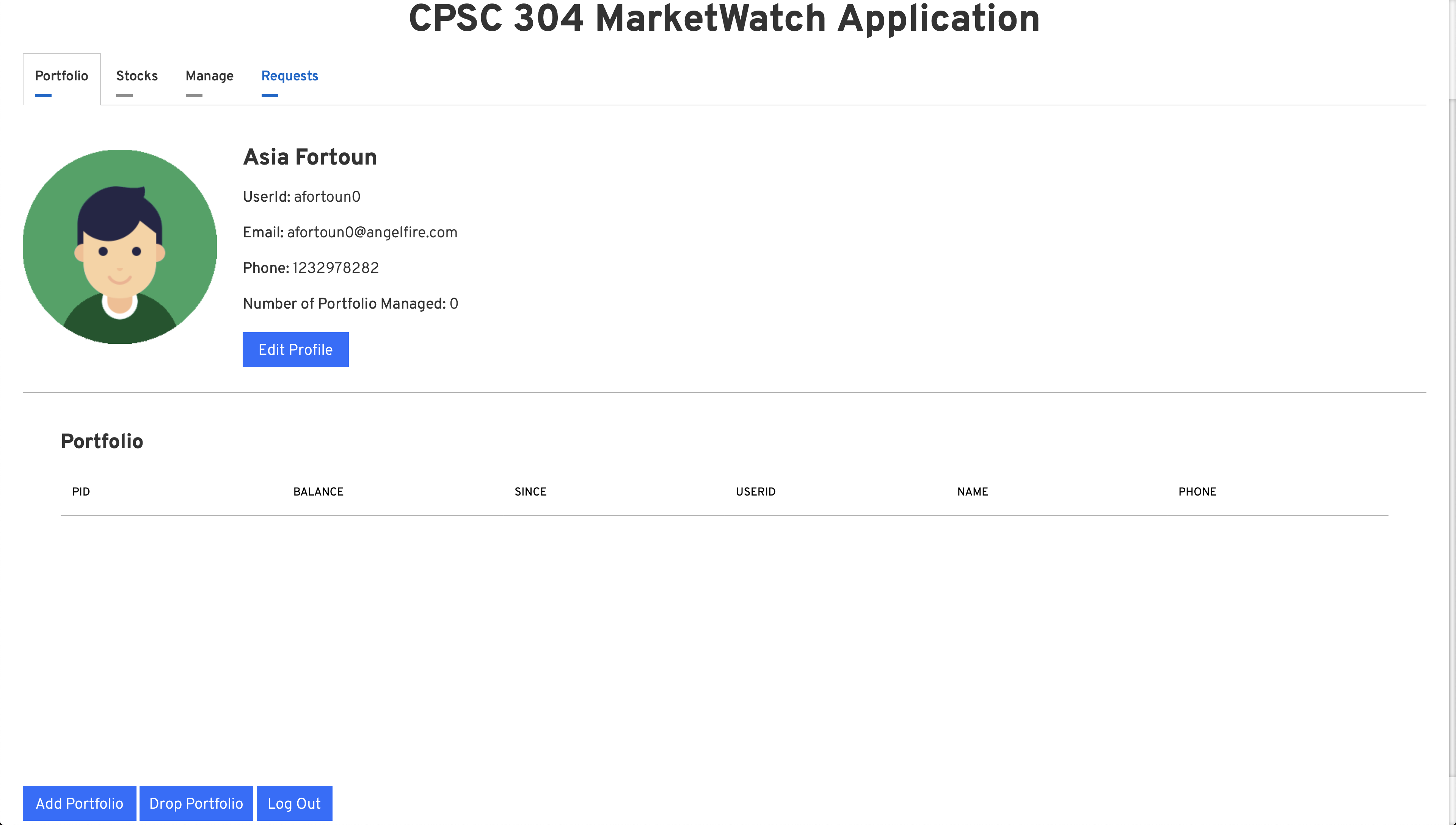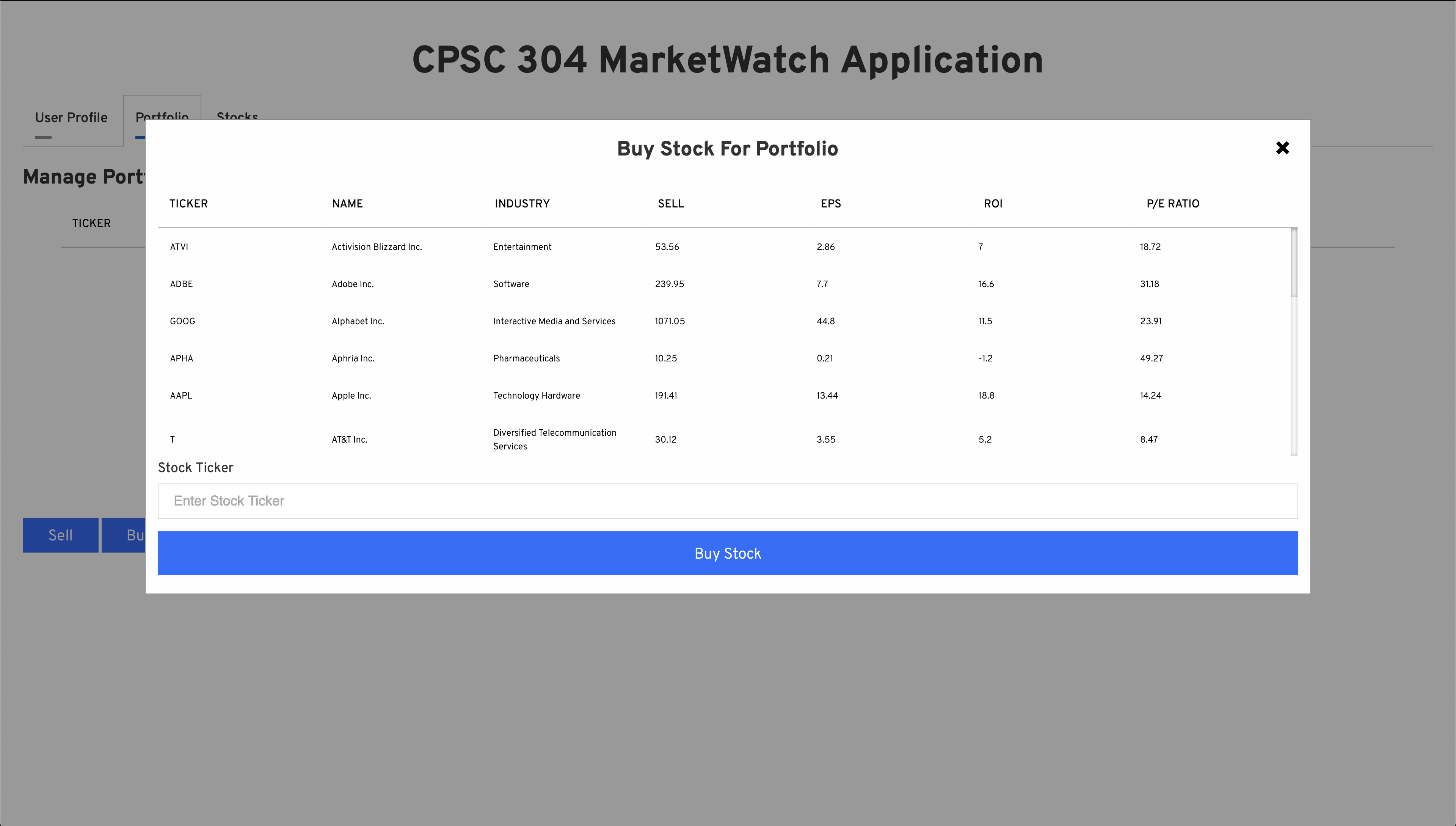 Here you can see how a user can register, login, update its information, buy stocks, sell stocks, and see their portfolio holdings.